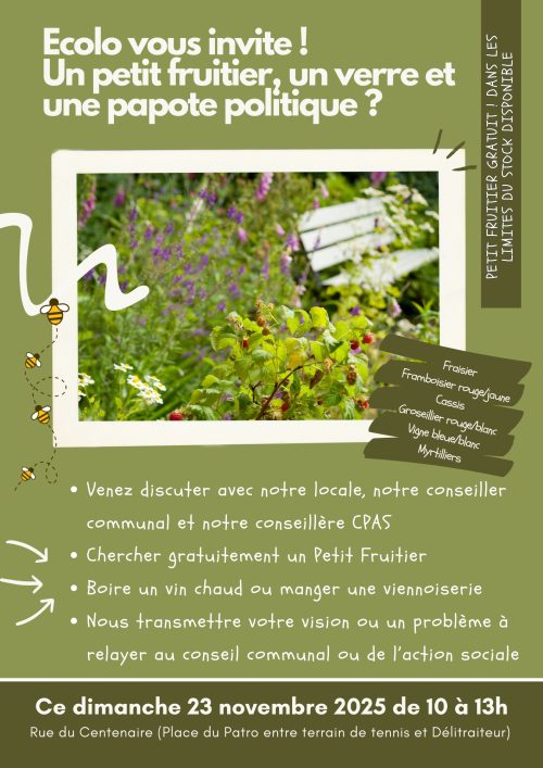 La locale ECOLO d’Ittre vous invite à sa traditionnelle distribution de Petits Fruitiers le dimanche 23/11 de 10h00 à 13h00 sur la place du Patro Notre-Dame d’Ittre Au programme ? Un échange, une rencontre, un Petit Fruitier à planter chez vous (ou ailleurs) et un vin chaud ! Où ? Dans le centre d’Ittre, lieu …Programme stratégique transversal - opinion et critiques